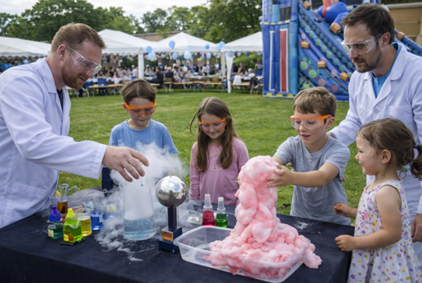Děti uvidí efektní fyzikální a chemické experimenty. Některé budou pouze na ukázku a jiné si budou moci děti samy vyzkoušet pod vedením lektorů.